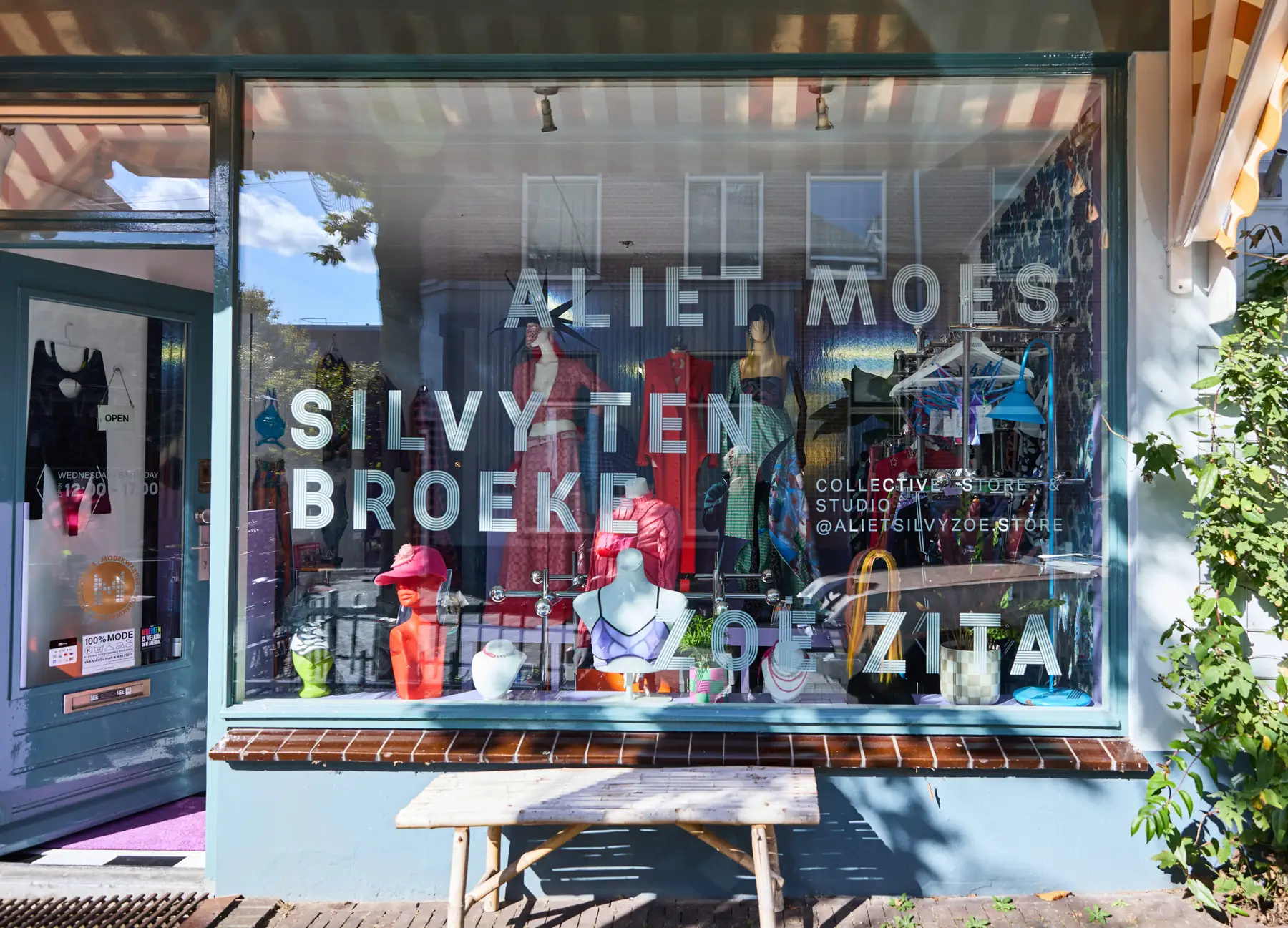 Welkom in de collectieve winkel/studio van Aliet Moes, Silvy ten Broeke & Zoë Zita aan de Klarendalseweg 175 in Arnhem. Drie zelfstandige ontwerpers onder één dak, ontstaan uit een vriendschap tijdens hun studie Fashion Design aan ArtEZ.