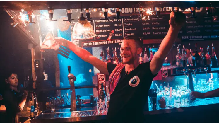Binnen wacht gezelligheid en een leuke avond uit voor iedereen. Dankzij het stoere, houten interieur waant men zich in een blokhut op een berg in Oostenrijk. En de muziek doet ook veel, natuurlijk. Samen met het bevlogen barpersoneel maakt het de avond compleet. En wat de bar betreft… hou ‘m in de gaten, want hij zou zomaar in beweging kunnen komen.